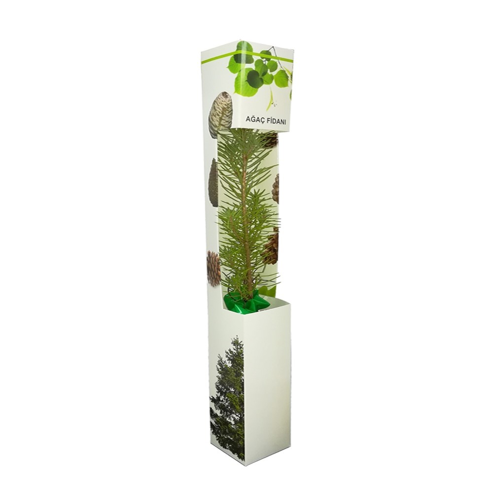 – Karton kutu içerisinde canlı ağaç fidanı.